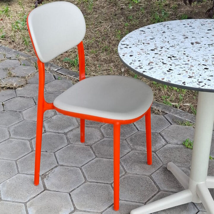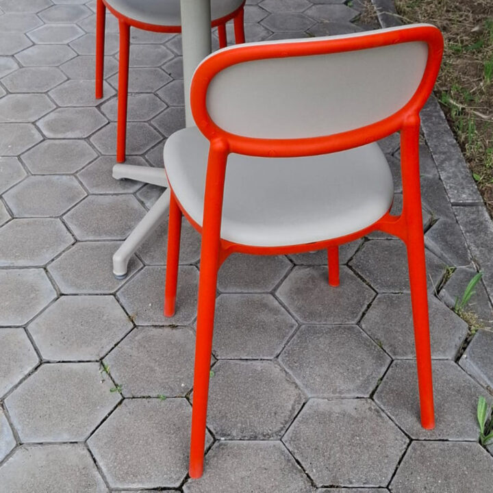 Uz sto dolaze dve stolice Duo, izradjene od cvrstog polipropilena, materijala poznatog po svojoj izdrzljivosti i otpornosti na spoljasnje uticaje. Stolice su dostupne u atraktivnoj bez-narandzastoj boji, koja unosi vedrinu i toplinu u svaki prostor.
