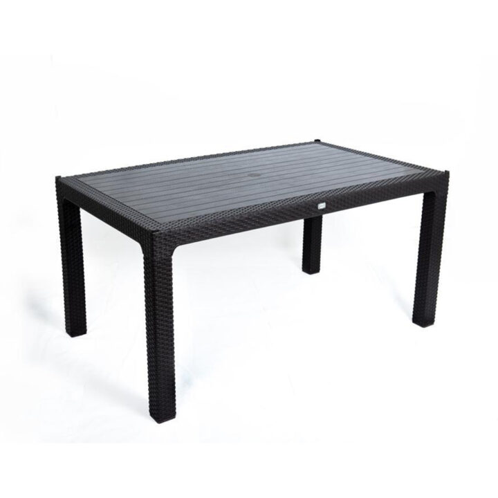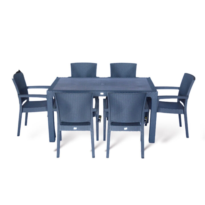 Ova garnitura sastavljena od sest Rattan stolice i stola dimenzija 90×150 cm idealna je za svaki spoljasnji prostor. Izradjena od plastike, garnitura je otporna na sve vremenske uslove, sto je cini savrsenim izborom za terase, dvorista ili balkone.