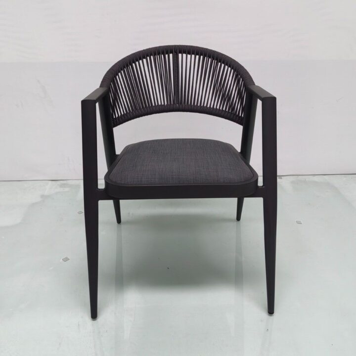 Naslon je izrađen od čvrstih, pažljivo ispletanih pertli koje su otporne na vremenske uslove, zadržavaju oblik i pružaju dodatni vizuelni efekat modernog stila.
