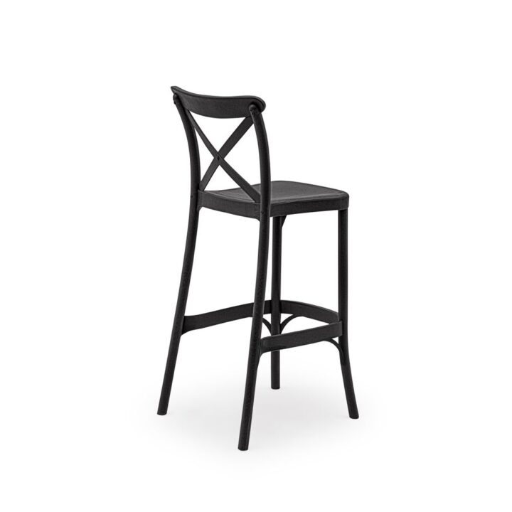 Stolica je izradjena od polipropilena (kvalitetne plastike), ojacana fiberglasom (staklenim vlaknima). Livena je u kalupu u jednom komadu. Pogodna za spoljasnji prostor, otporna na UV zrake i ostale vremenske uslove. Model je retro dizajna sa reljefom i teksturom drveta. Prakticna je za odlaganje jer je sloziva jedna na drugu. Plasticne stopice na nogarima onemogucavaju klizanje po glatkim podnim povrsinama.
