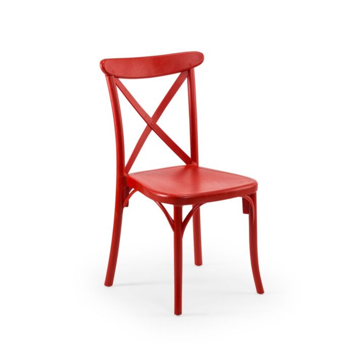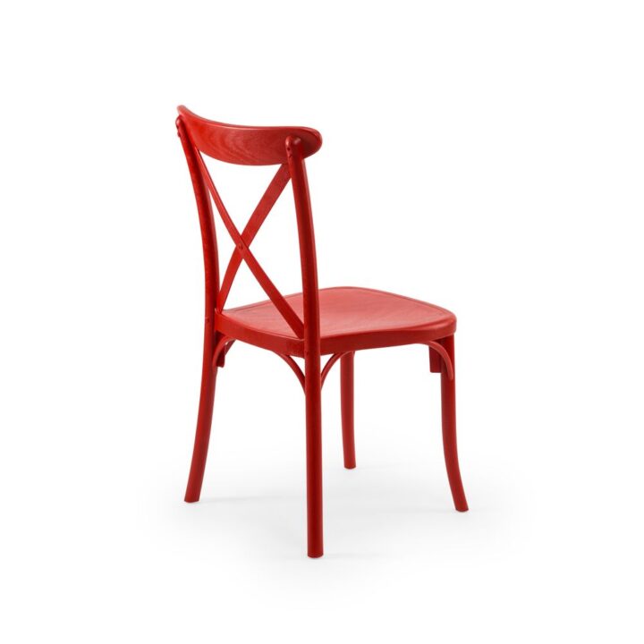 Stolica je izradjena od polipropilena (kvalitetne plastike), ojacana fiberglasom (staklenim vlaknima). Livena je u kalupu u jednom komadu. Pogodna za spoljasnji prostor, otporna na UV zrake i ostale vremenske uslove. Model je retro dizajna sa reljefom i teksturom drveta. Prakticna je za odlaganje jer je sloziva jedna na drugu. Plasticne stopice na nogarima onemogucavaju klizanje po glatkim podnim povrsinama.