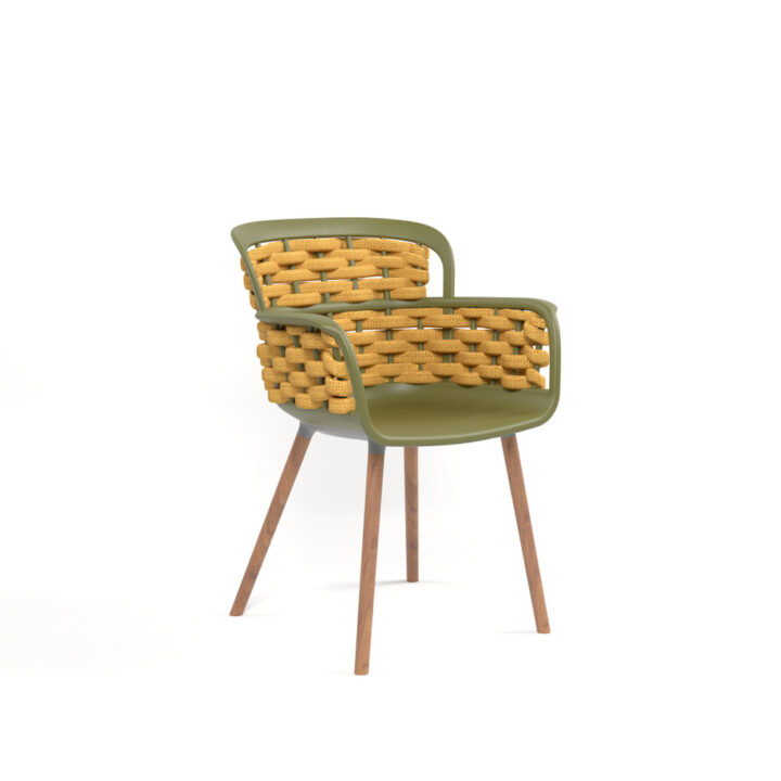 Eva-N Knitted stolica kombinuje moderni dizajn i udobnost. Sedalni deo i naslon su od polipropilena ojacanog fiberglasom, dok su nogari od drveta. Pertle u naslonu i rukonaslonu dodaju vizuelni sarm i povecavaju udobnost. Lako se odrzava, idealna za unutrasnje prostore.