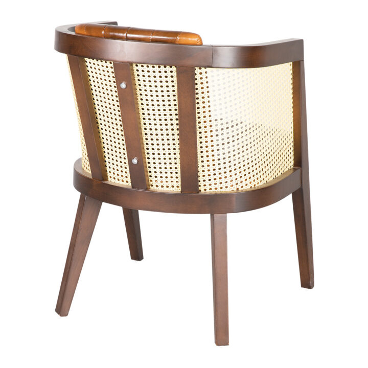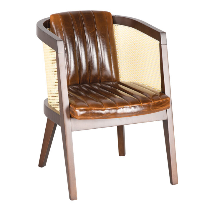 Sedalni deo i naslon su tapacirani i dostupni u kvalitetnom meblu ili eko kozi, pruzajuci visok nivo udobnosti za dugotrajno sedenje. Mogucnost izbora boje drveta, spanske trske, mebla ili eko koze omogucava vam da prilagodite stolicu svom enterijeru ili eksterijeru.