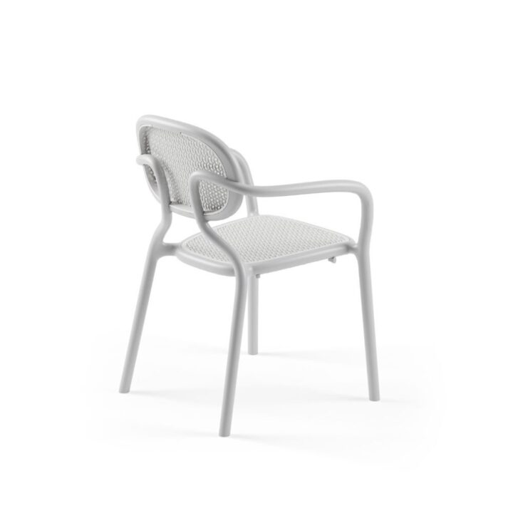 Haz je moderna baštenska stolica izrađena od polipropilena ojačanog fiberglasom, što joj daje izuzetnu čvrstoću i dugotrajnost. Namenjena je za korišćenje na otvorenom i potpuno je otporna na sve vremenske uslove, uključujući sunce, kišu i vlagu, uz dodatnu UV zaštitu koja čuva boju i materijal.