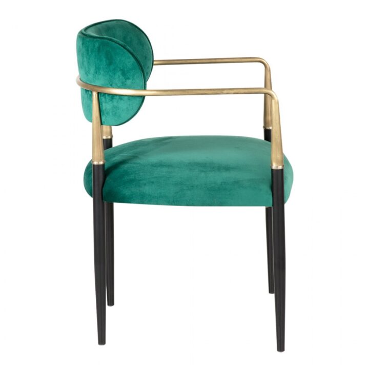 Stolica izradjena od drveta sa metalnim detaljima, tapacirana u eko kozi ili meblu, izdrzljiva i jednostavna za odrzavanje. Pogodna je za ugostiteljske objekte, kao sto su restorani i kafici.