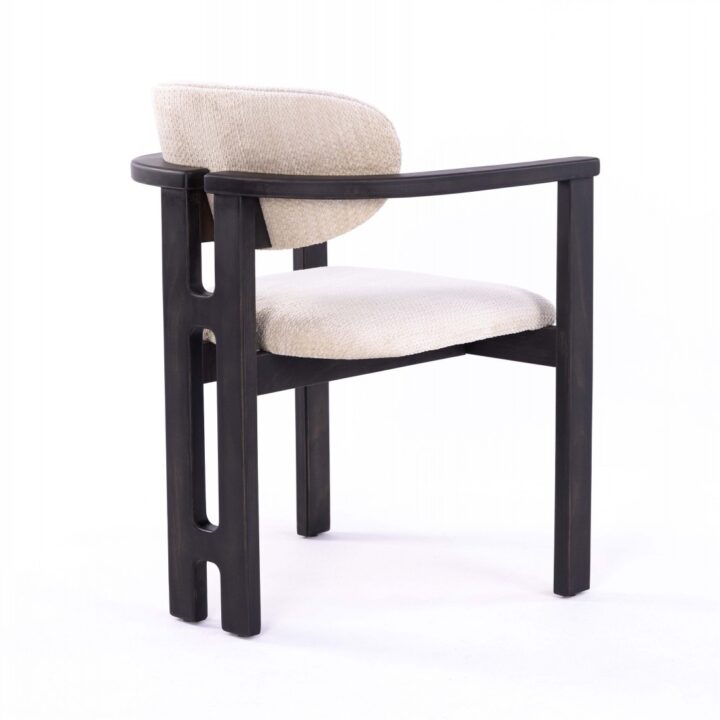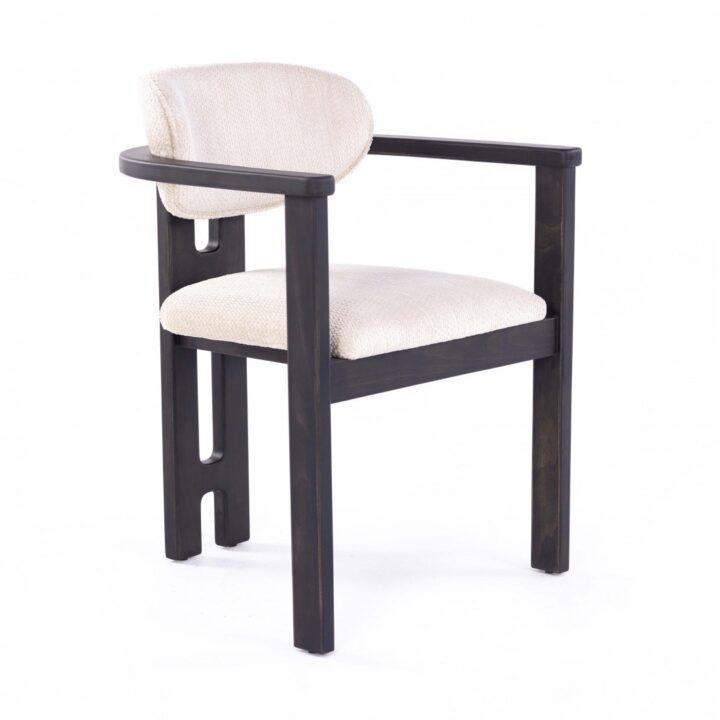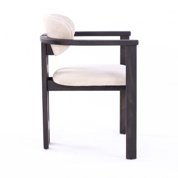 Nicol stolica kombinuje moderni dizajn i funkcionalnost, izradjena od cvrstog grabovog drveta. Naslon i sedalni deo su tapacirani u eko kozi ili meblu, pruzajuci udobnost i lako odrzavanje. Sa specificnim oblikom i rukonaslonima, ova stolica donosi stil u svaki prostor.