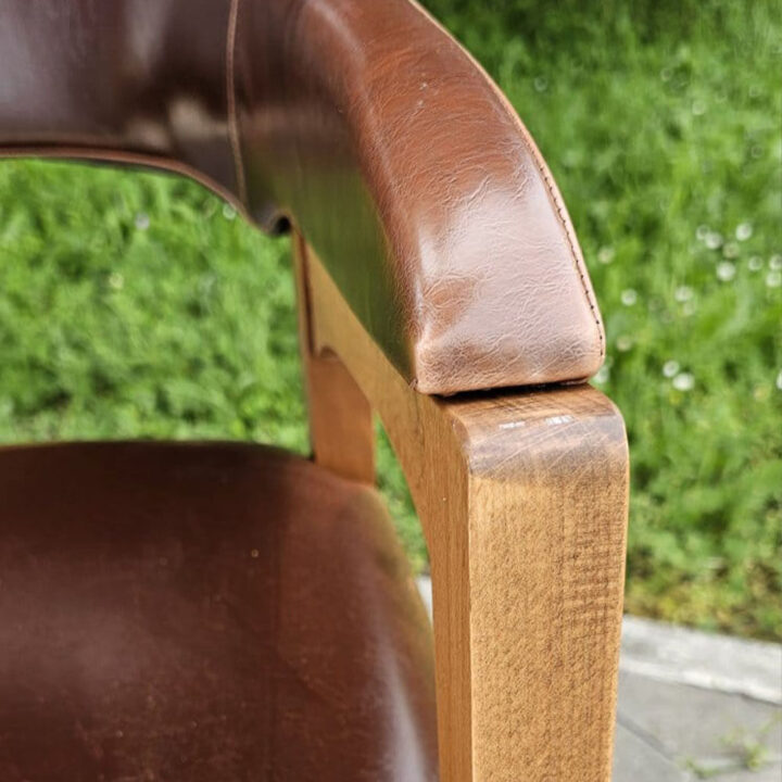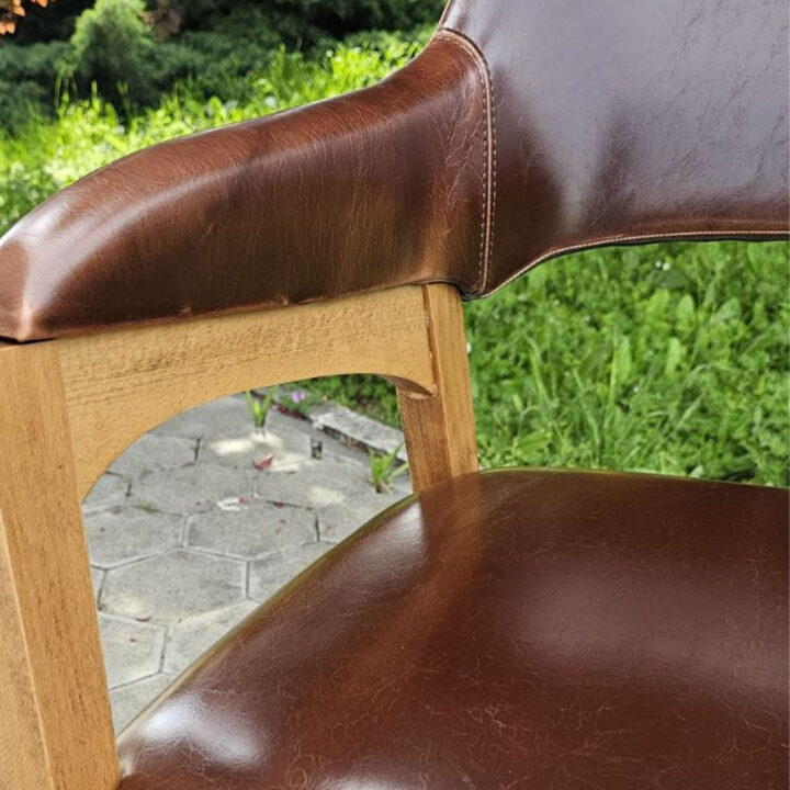Stolica Ribon kombinuje klasican dizajn i savremenu funkcionalnost, cineci je idealnim izborom za trpezarije, kafice, restorane ili kancelarije. Izradjena je od kvalitetnog drveta, koje garantuje stabilnost i dug vek trajanja, dok su sedalni deo i naslon tapacirani eko kozom u elegantnoj braon boji.