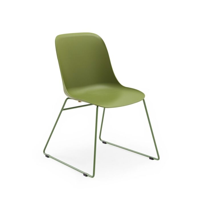 Stolica Shell-U bez rukonaslona ima sedalni deo i naslon od polipropilena ojacanog fiberglasom, sto je cini izuzetno cvrstom i dugotrajnijom. Nogari su metalni i dolaze u boji stolice, sto joj daje moderan izgled.