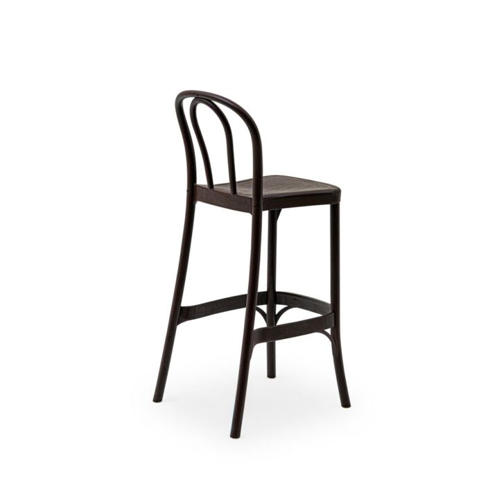 Stolica je izradjena od polipropilena (kvalitetne plastike), ojacana fiberglasom (staklenim vlaknima). Livena je u kalupu u jednom komadu. Pogodna za spoljasnji prostor, otporna na UV zrake i ostale vremenske uslove. Model je retro dizajna sa reljefom i teksturom drveta. Prakticna je za odlaganje jer je sloziva jedna na drugu. Stopice od silikona na nogarima onemogucavaju klizanje po glatkim podnim povrsinama.