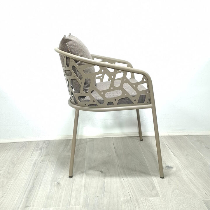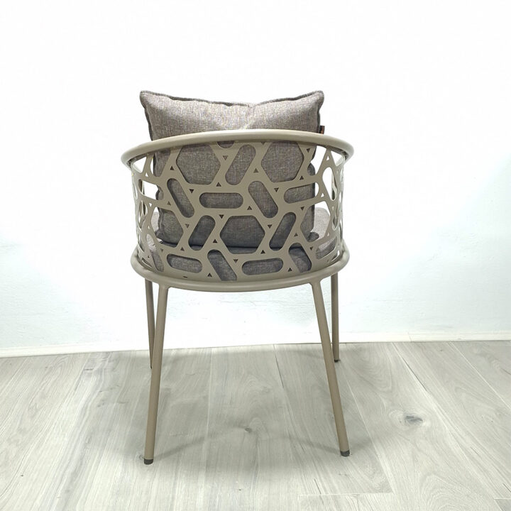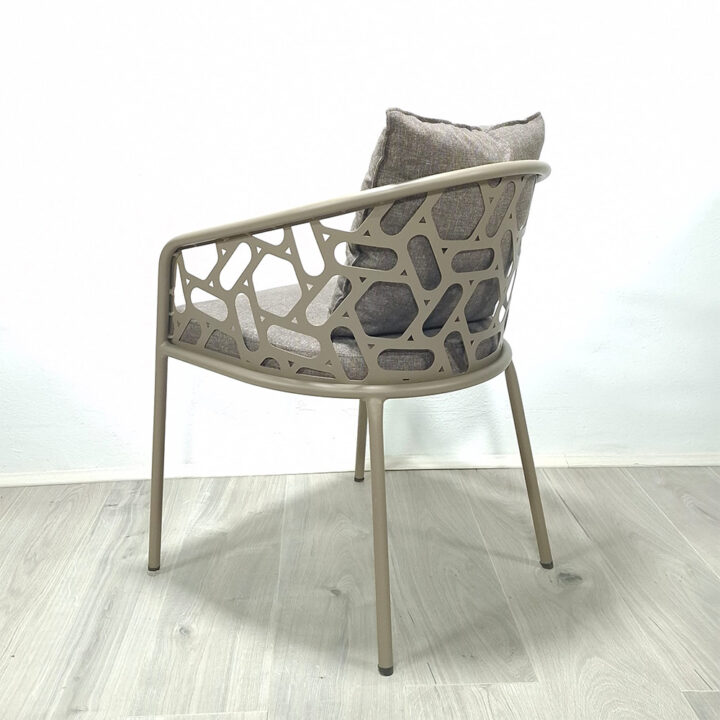 Stolica Tweet sa konstrukcijom u boji kafe i sivim jastucima savrsen je izbor za elegantne i moderne spoljasnje prostore koji su pokriveni. Njena cvrsta i atraktivna konstrukcija pruza stabilnost, dok jastuci omogucavaju udobnost i opustanje.